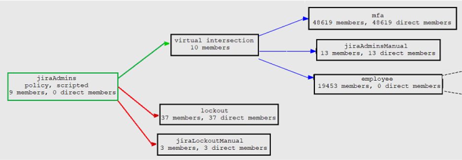 Member of employee, member of MFA, and member of app:jira:jiraAdminsManual, but not a member of lockout or app:jira:jiraLockoutManual