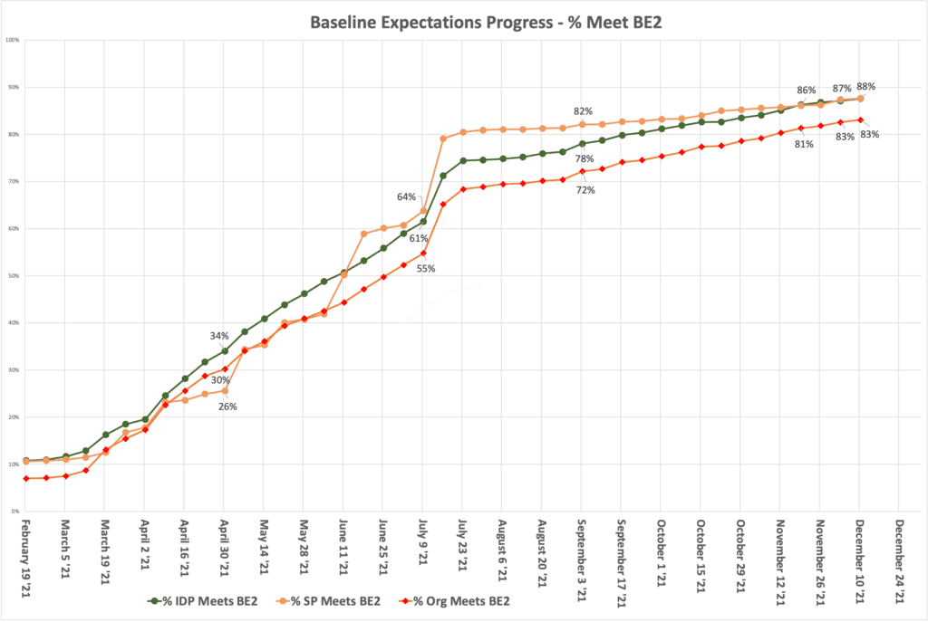 As of December 10, 2021, 83% of InCommon Participant Organizations have met BE2 requirements: