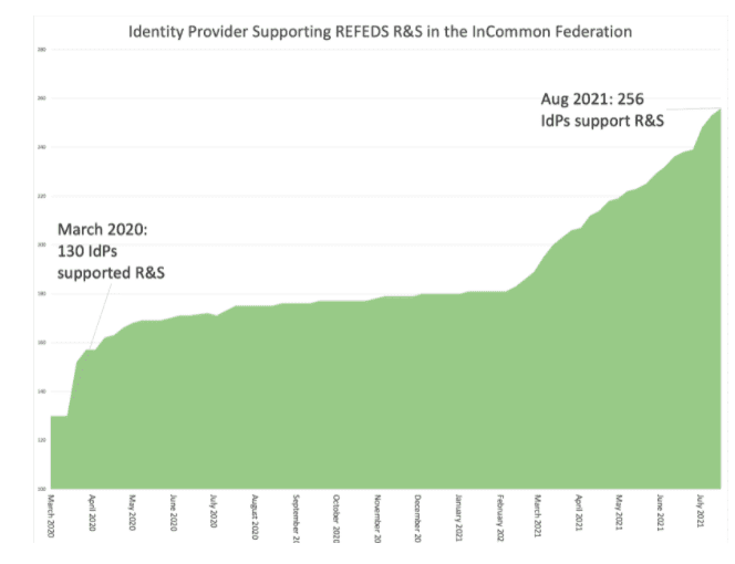 As of the start of August 2021, 256 InCommon identity providers have flipped the switch and are now supporting R&S, nearly doubling the R&S support in the community. See the full list of R&S Supporting organizations.