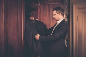 Off-Season Storing: Not all suits are can be worn throughout the year. Before you put away your heavy wool for summer or your seersucker for winter, you should have it dry cleaned to remove any food particles or stains. If left unchecked, they create a feeding ground for moths and other fabric-damaging insects. Once cleaned, store your suits and formal attire upright in a garment bag in your closet. Make sure all items are completely dry before storing to avoid mildew or mold that grows on wet or damp fabrics.